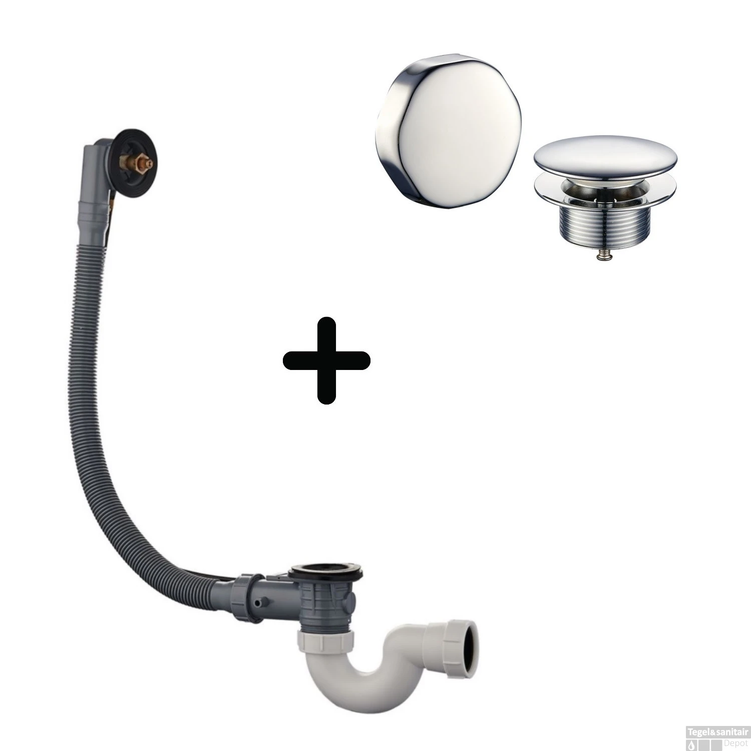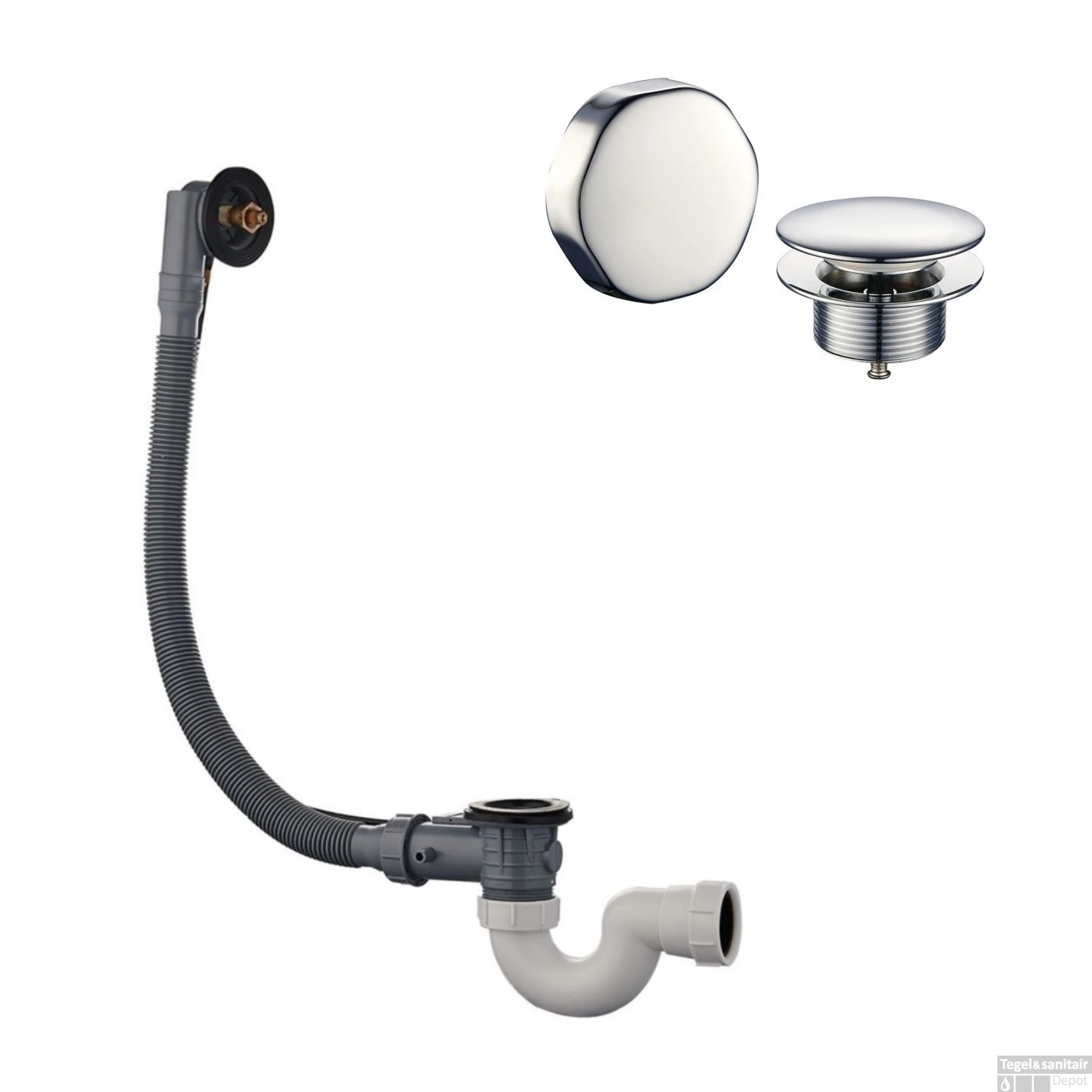 De luxe badplug overloopcombinatie met een overloop functie. Het bad word gevuld door een bedieningsknop in de kleur chroom. De badplug overloopcombinatie is eenvoudig te monteren op een inbouw-mengkraan.