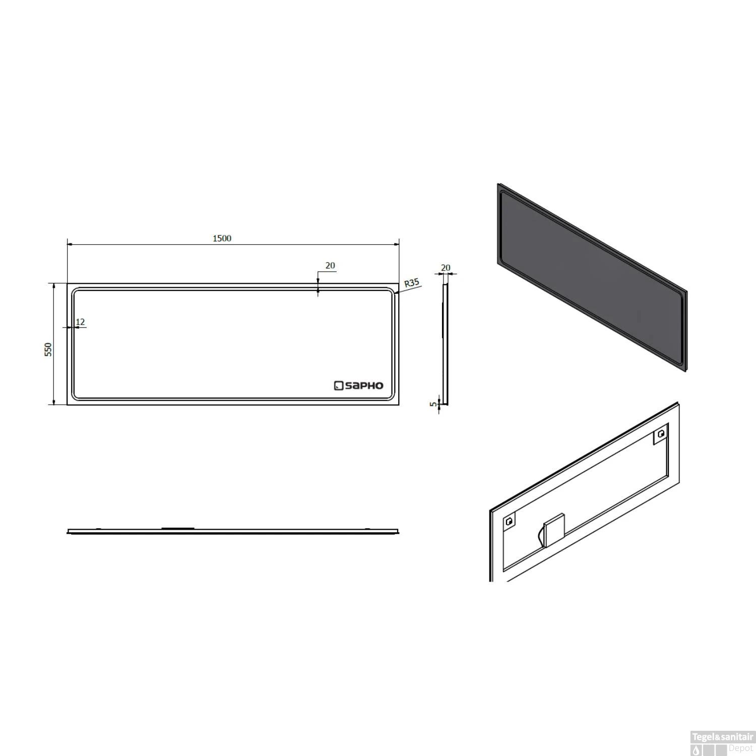Specificaties Badkamerspiegel 150×55 cm LED-Strips Sapho Gemini II:
