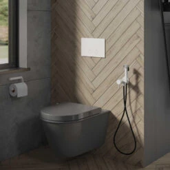Een mooie eenknops bedieningsplaat met een spoel-stop activering. Het voordeel met deze geïntegreerde bediening is dat de gebruiker de toiletspoeling kan activeren, maar ook zelf weer kan stoppen. U bepaald op die manier hoeveel spoelwater u gebruikt en u bespaard daarmee automatisch ook water.