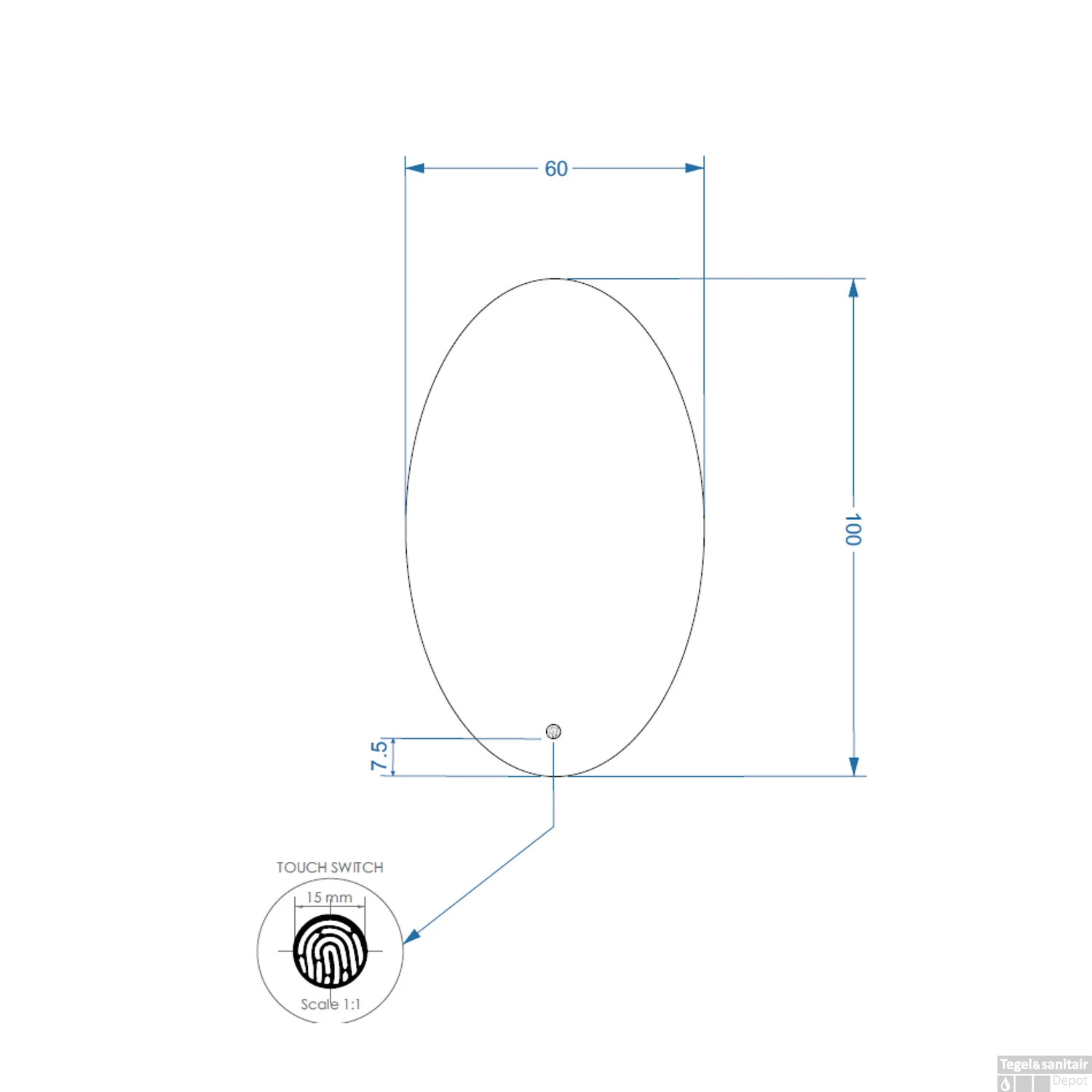 Specificaties Badkamerspiegel LED BWS Spark Ovale Verticaal 100×60 cm: