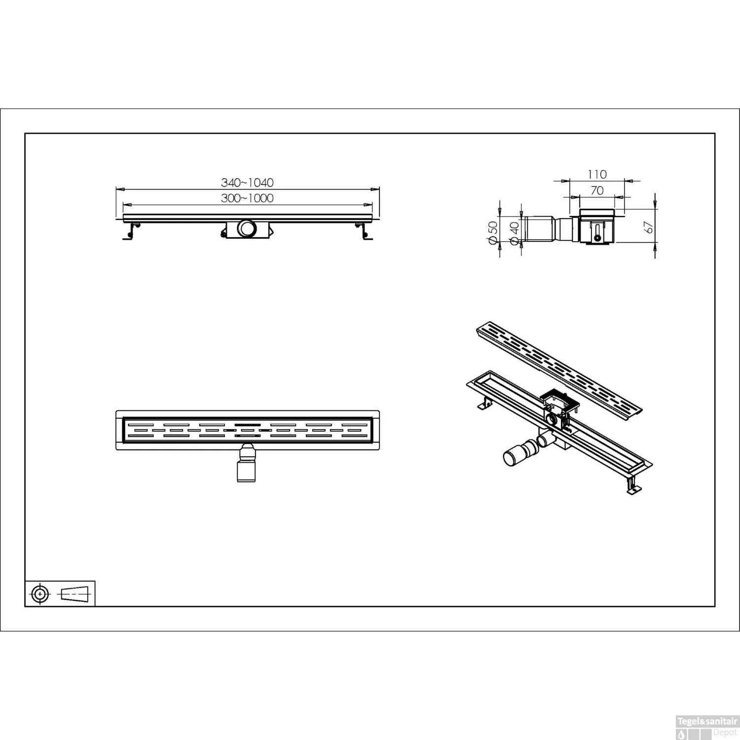 Specificaties Douchegoot Wiesbaden Met Flens 80x7cm 6.7cm Diep Gunmetal: