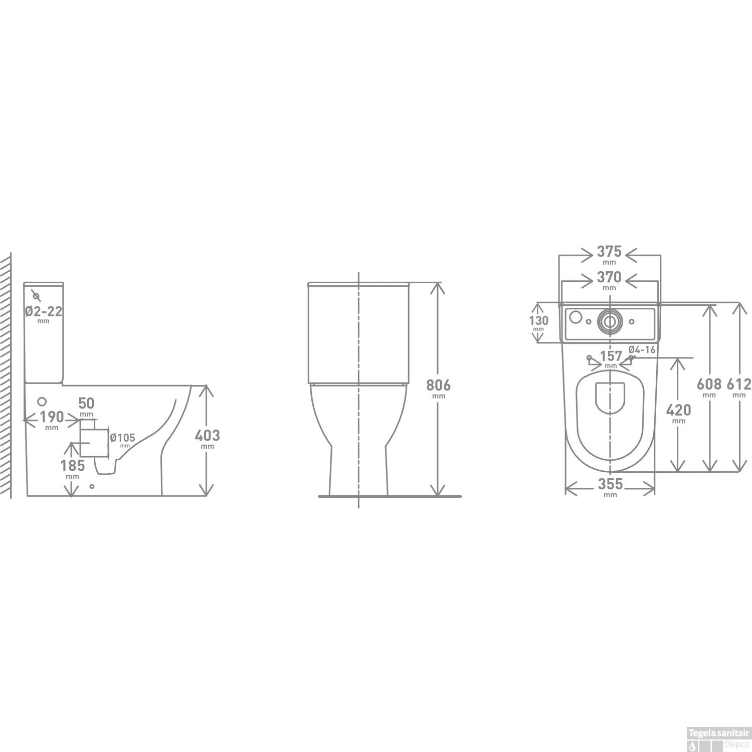 - – Met Universele aansluiting (H(PK) 18,5 cm / CA(AO) 22 cm) (incl.bocht)