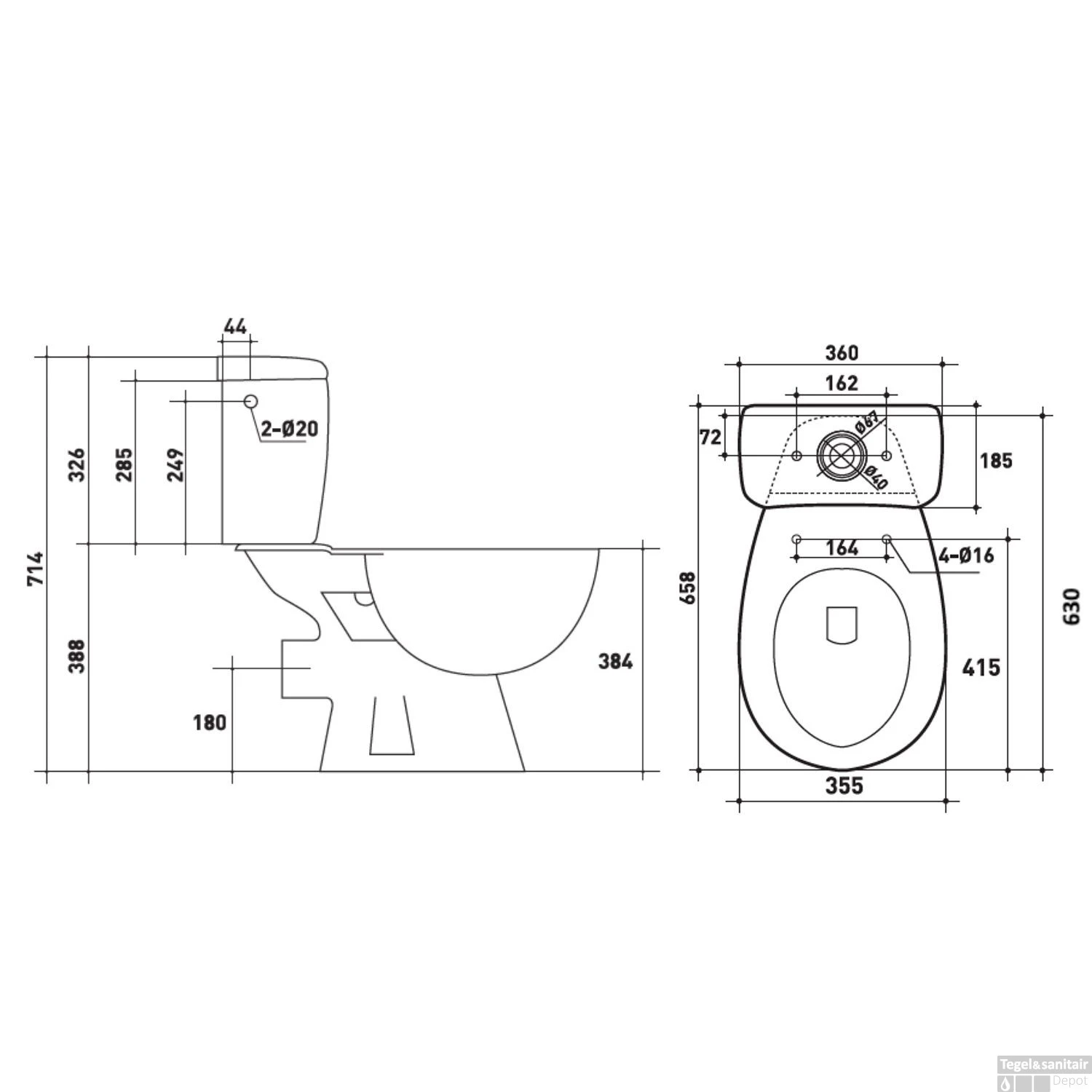 De pot gemaakt van hoogwaardig keramiek. Keramiek is namelijk een hard kleigebakken materiaal. Het gladde oppervlak zorgt ervoor dat er geen water intrekt en ook overig vuil makkelijk afdruipt. Het duoblok heeft een pot dat 38 cm hoog is en de zithoogte is 40.5 cm. De PK hoogte is 18cm tot het midden van de aansluiting.