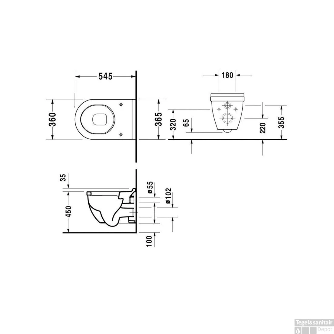 Specificaties Duravit Starck 3 Wandcloset Verhoogd 36.5×54.5×42 cm Keramiek Glanzend Wit :