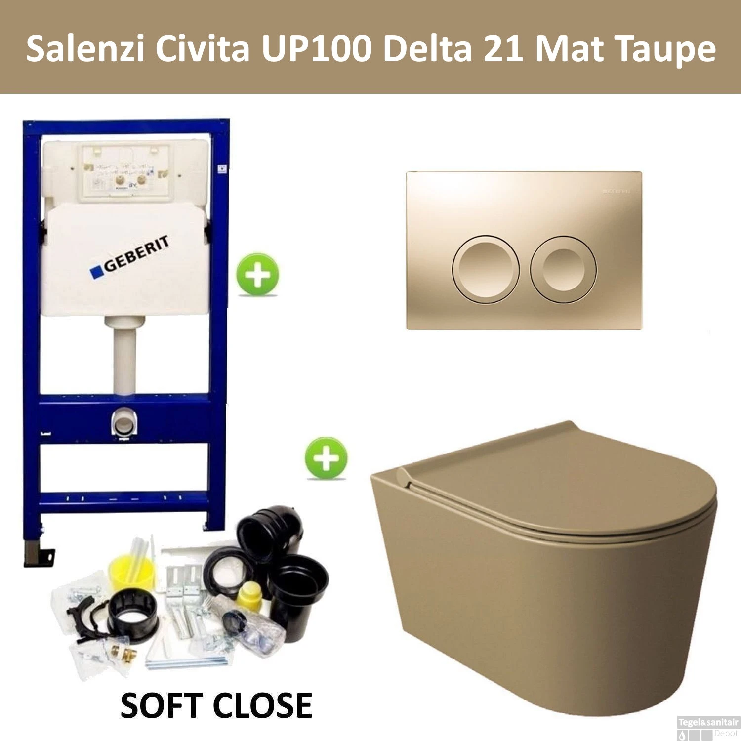 Geberit UP100 Toiletset Wandcloset Salenzi Civita Mat Taupe met Delta 21 Drukplaat