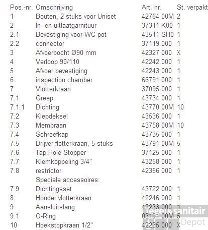 | Met aan- en afvoergarnituur | Ja |