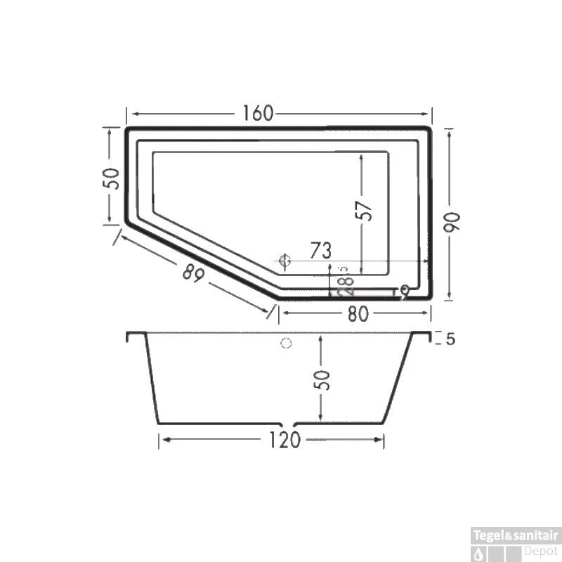 - – Bad met asymmetrische vorm