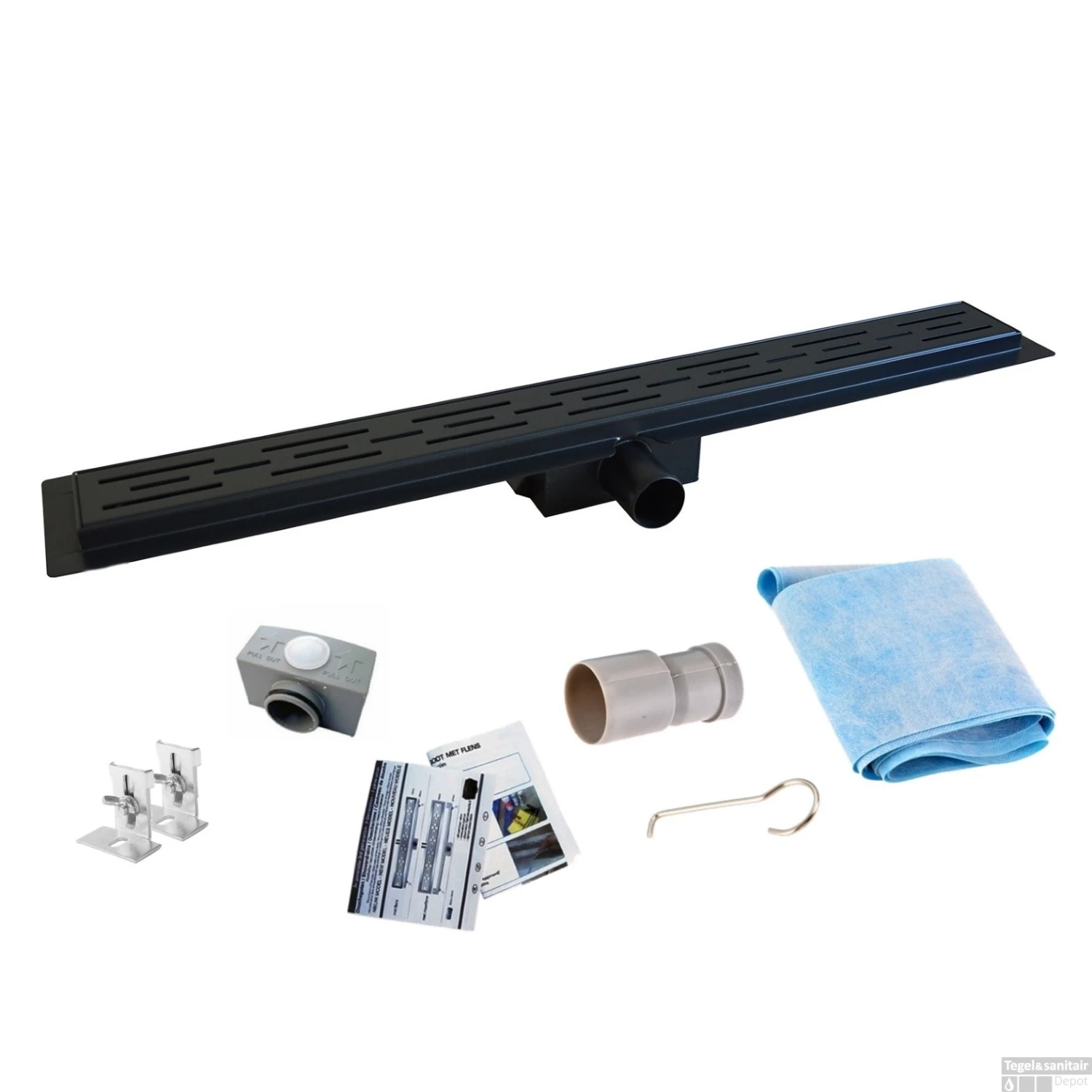 Mat Zwarte RVS Douchegoot Flens met Uitneembaar Sifon 70x7cm 6,7cm Diep MAT ZWART ROOSTER
