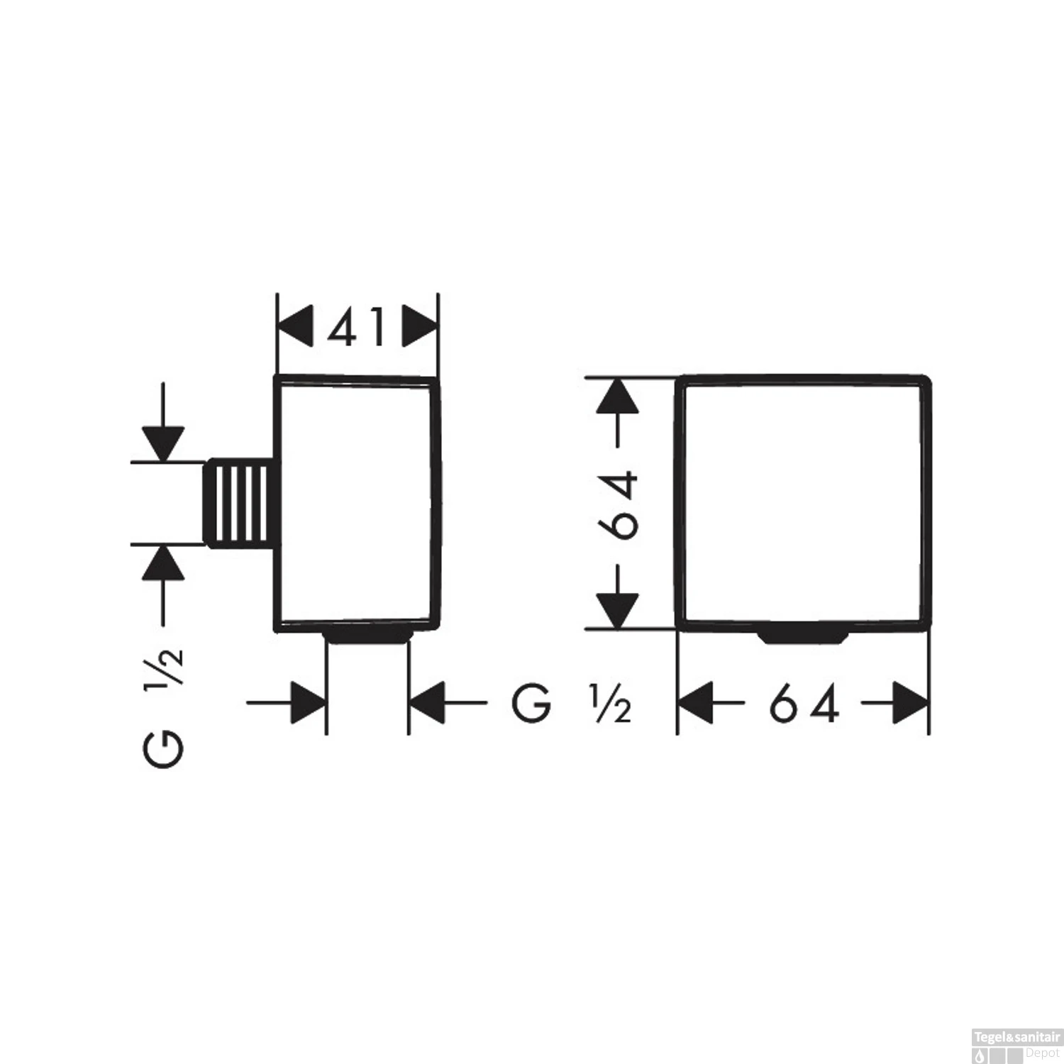 Specificaties Muuraansluitbocht FixFit Square HansGrohe met Terugslagklep Geborsteld Zwart Chroom: