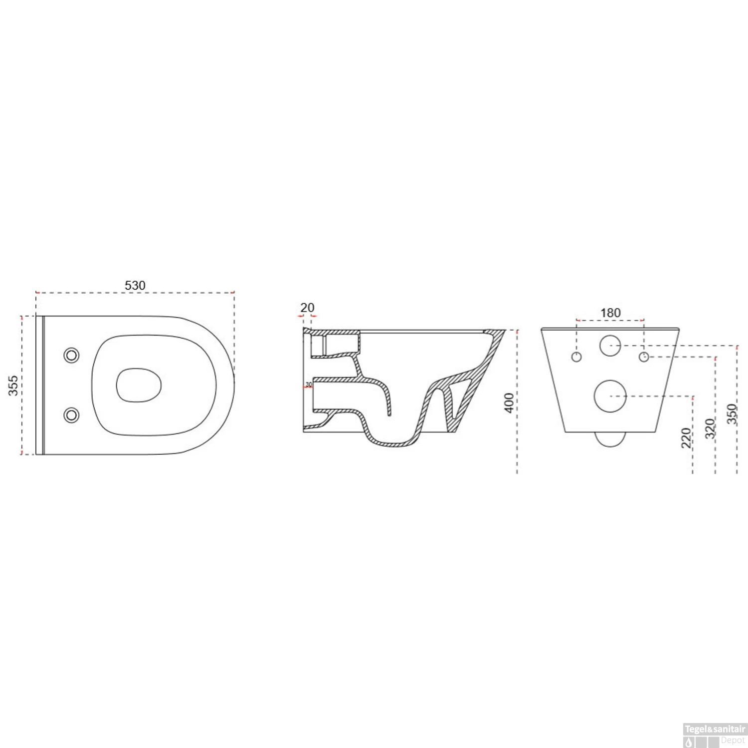 Specificaties Rimless Wandcloset Wiesbaden Luxe 53 cm met Ingebouwde Bidetkraan Koud Mat Zwart: