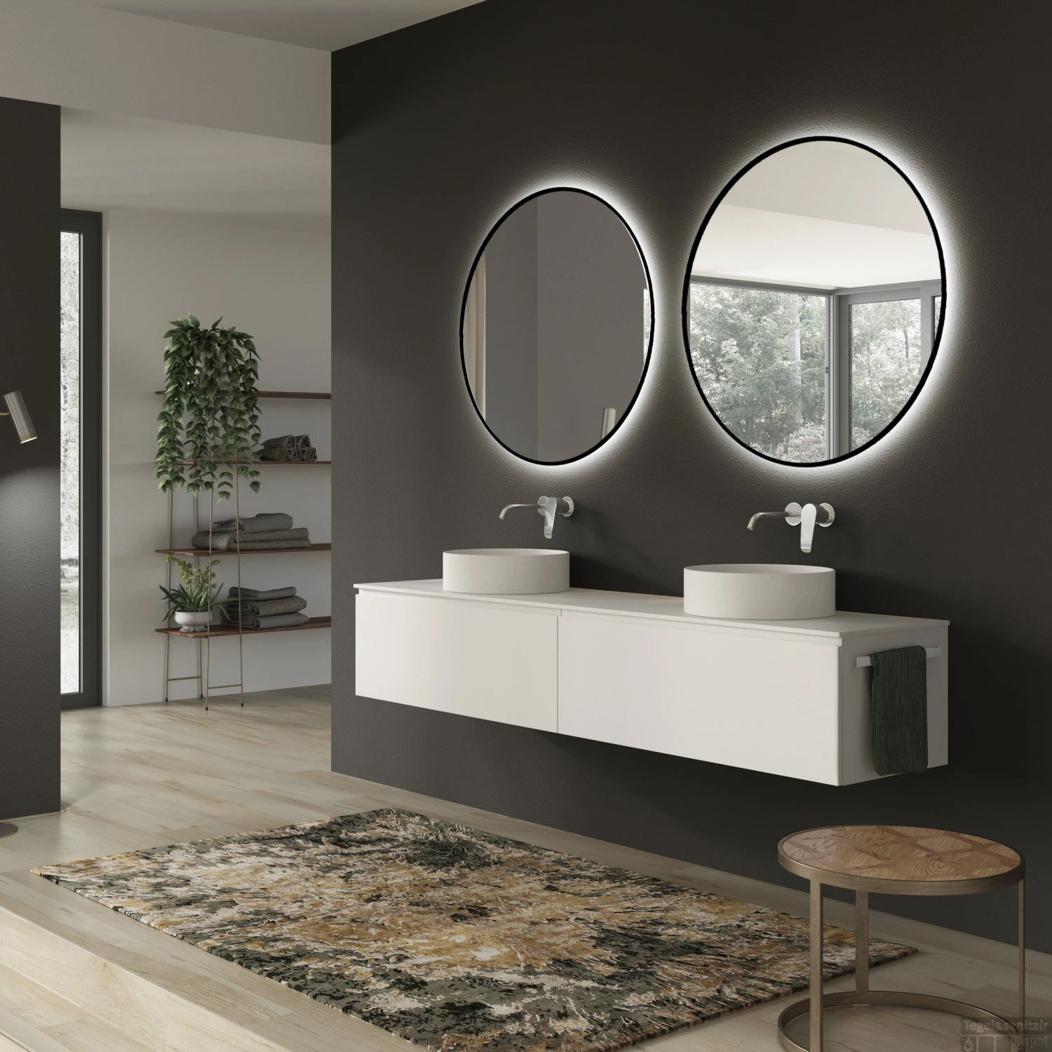 Ronde Badkamerspiegel Xenz Cola 80 cm Zwarte Kaderrand met Rondom Verlichting