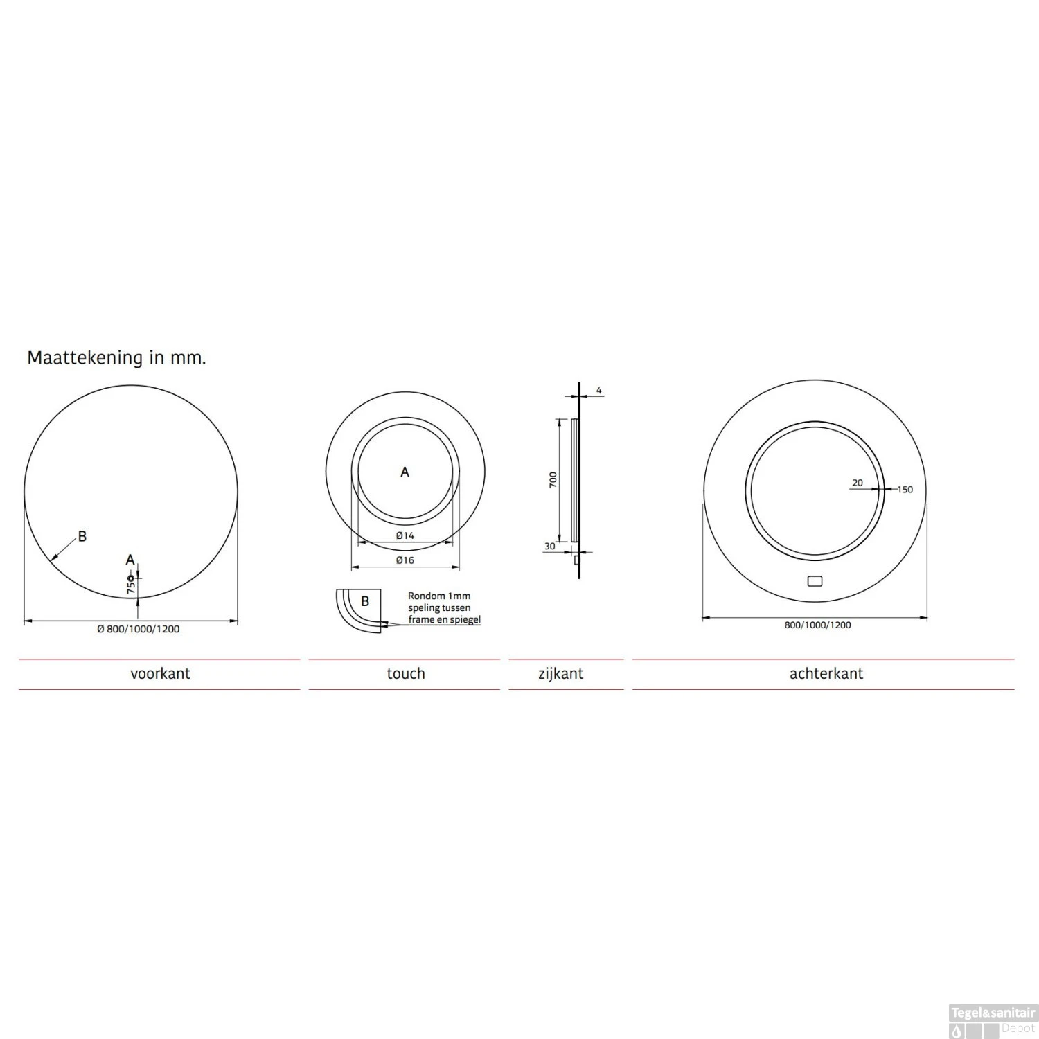 Spiegels met een diameter vanaf 100 cm zijn beschikken daarnaast over spiegelverwarming.