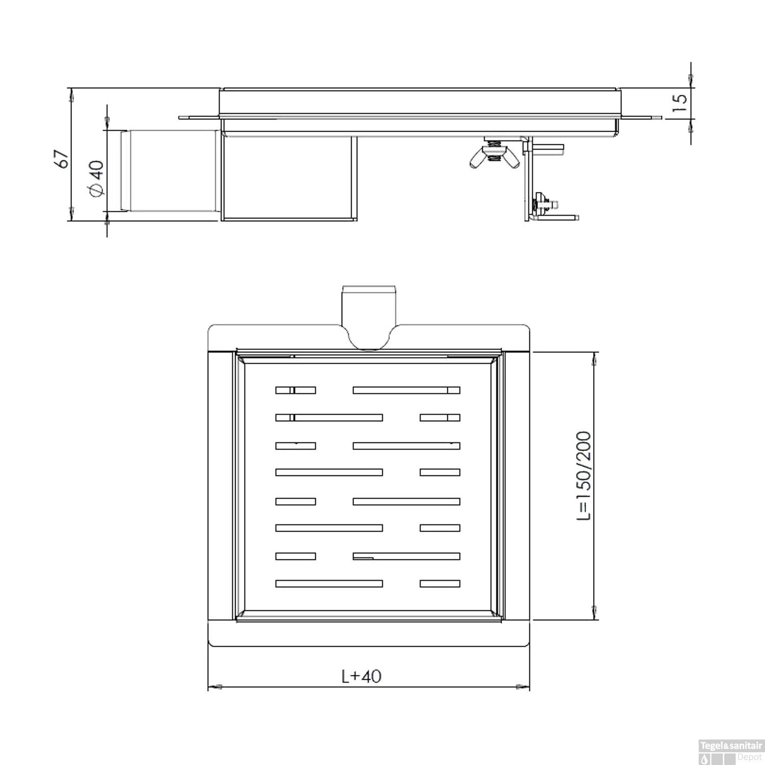 - 40mm zij-aansluiting met verloopmof 40×50
