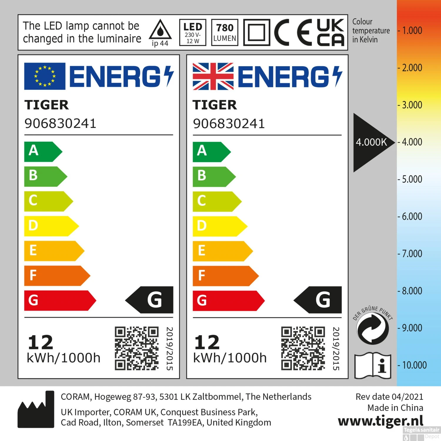 Specificaties Spiegellamp Tiger: