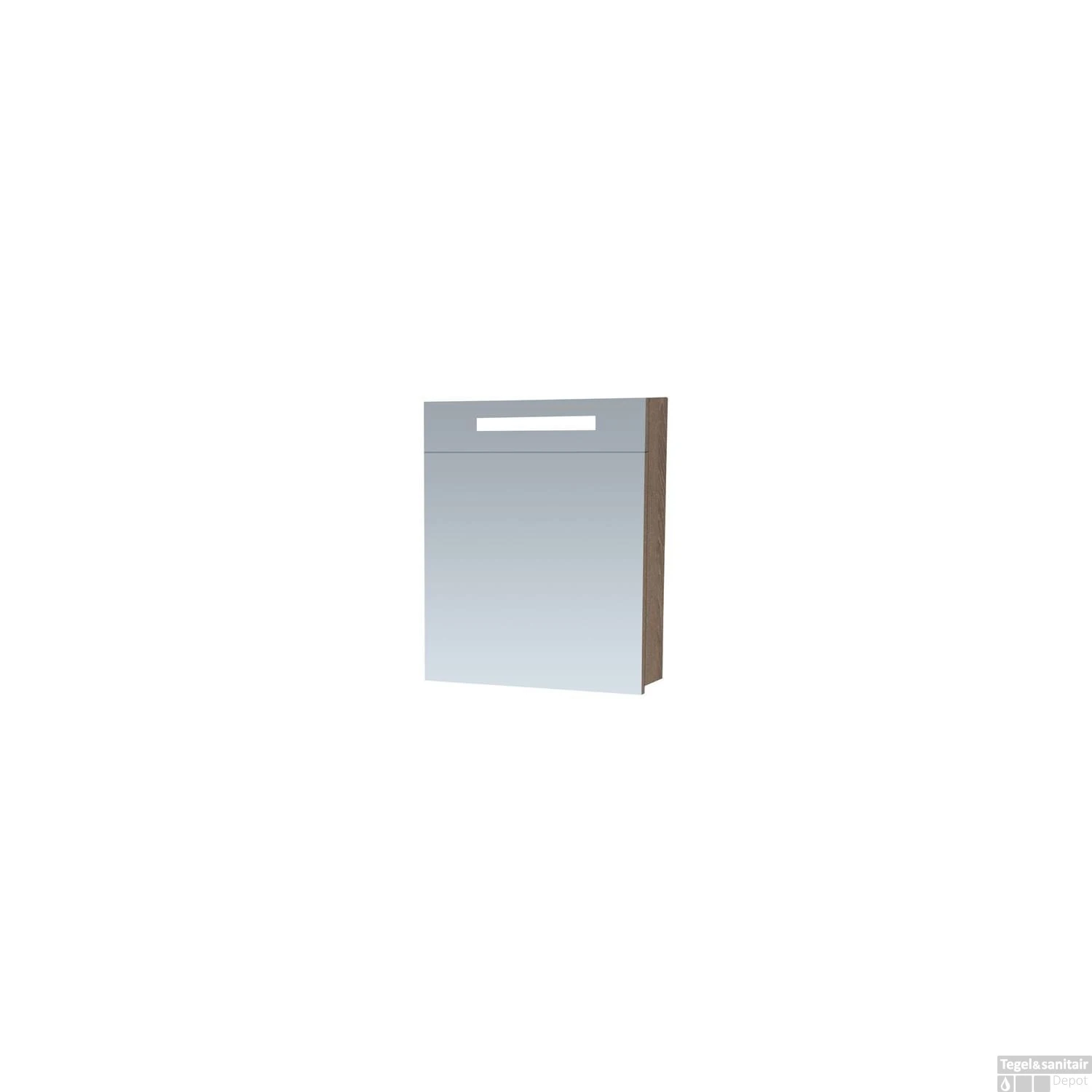 De kast bevat een enkelzijdige spiegel en een mooie houten look aan de binnenzijde. Het is voorzien van MFC. Verder wordt de spiegelkast inclusief een ingebouwde stopcontact met schakelaar geleverd.