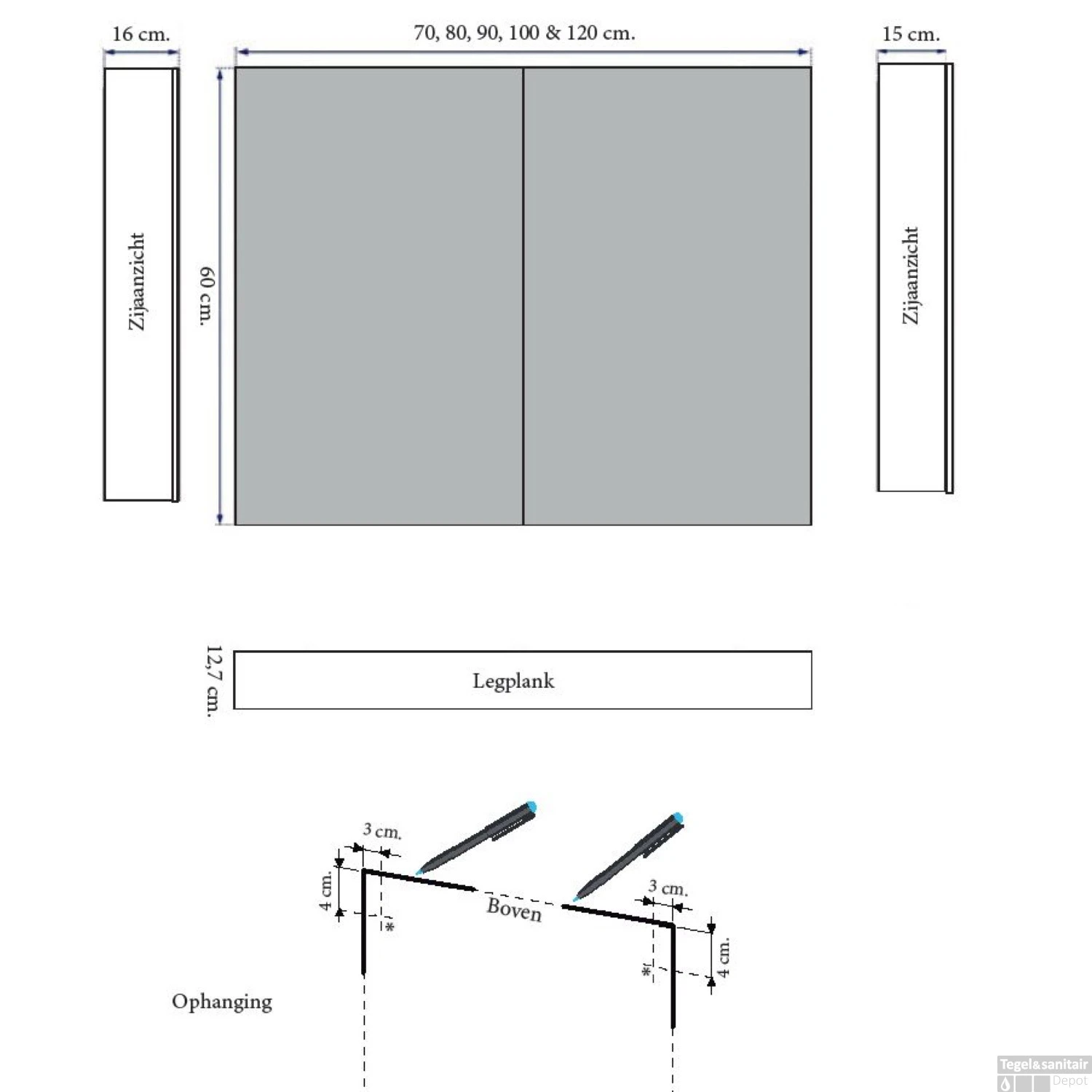- Verkrijgbaar in: 60 x 120 x 15 cm (hxbxd)