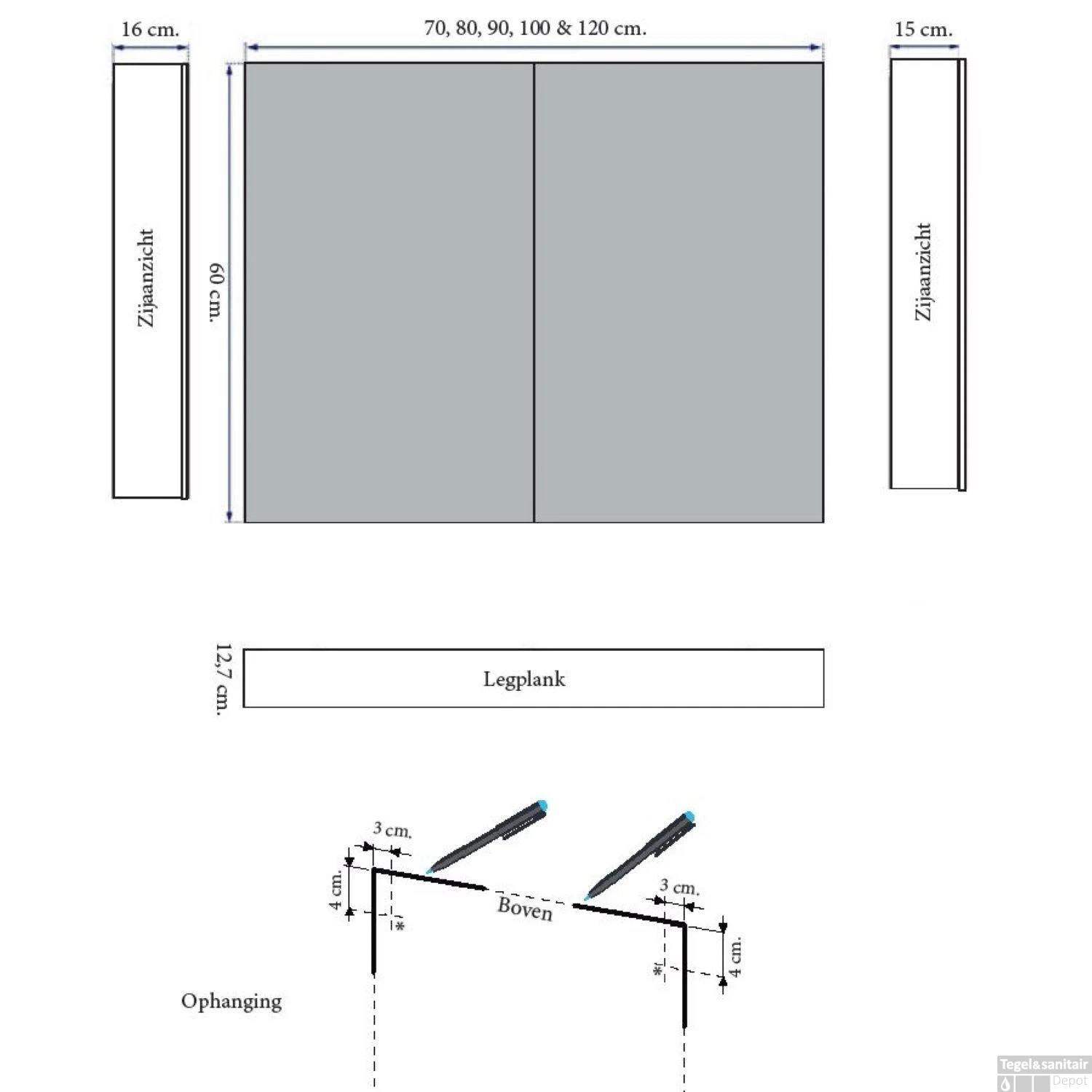Deze badkamerspiegel is prima te combineren met diverse types Sanicare design verlichting. De badkamerspiegel kent een breedte van 120 cm, een hoogte van 60 cm en een diepte van 15 cm.