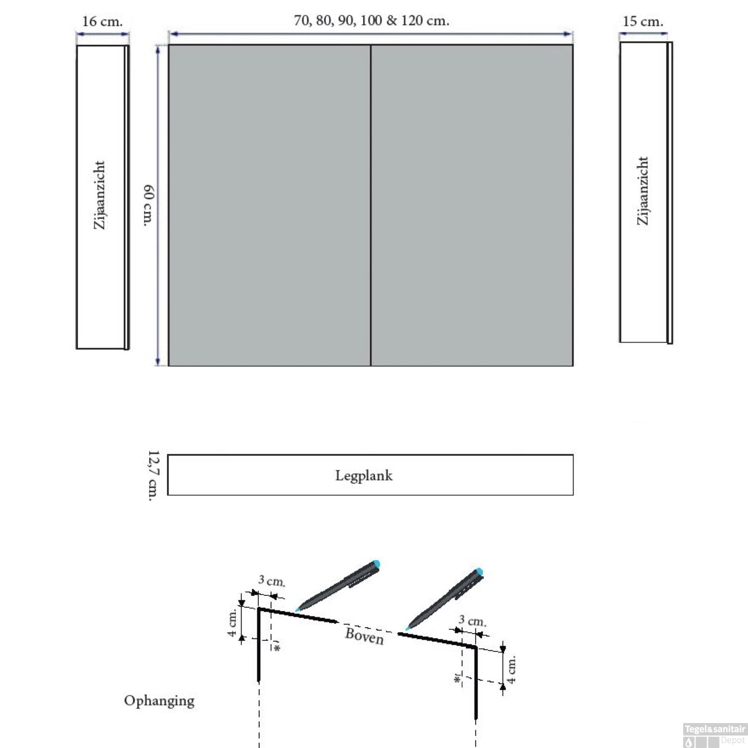 - Verkrijgbaar in: 60 x 120 x 15 cm (hxbxd)