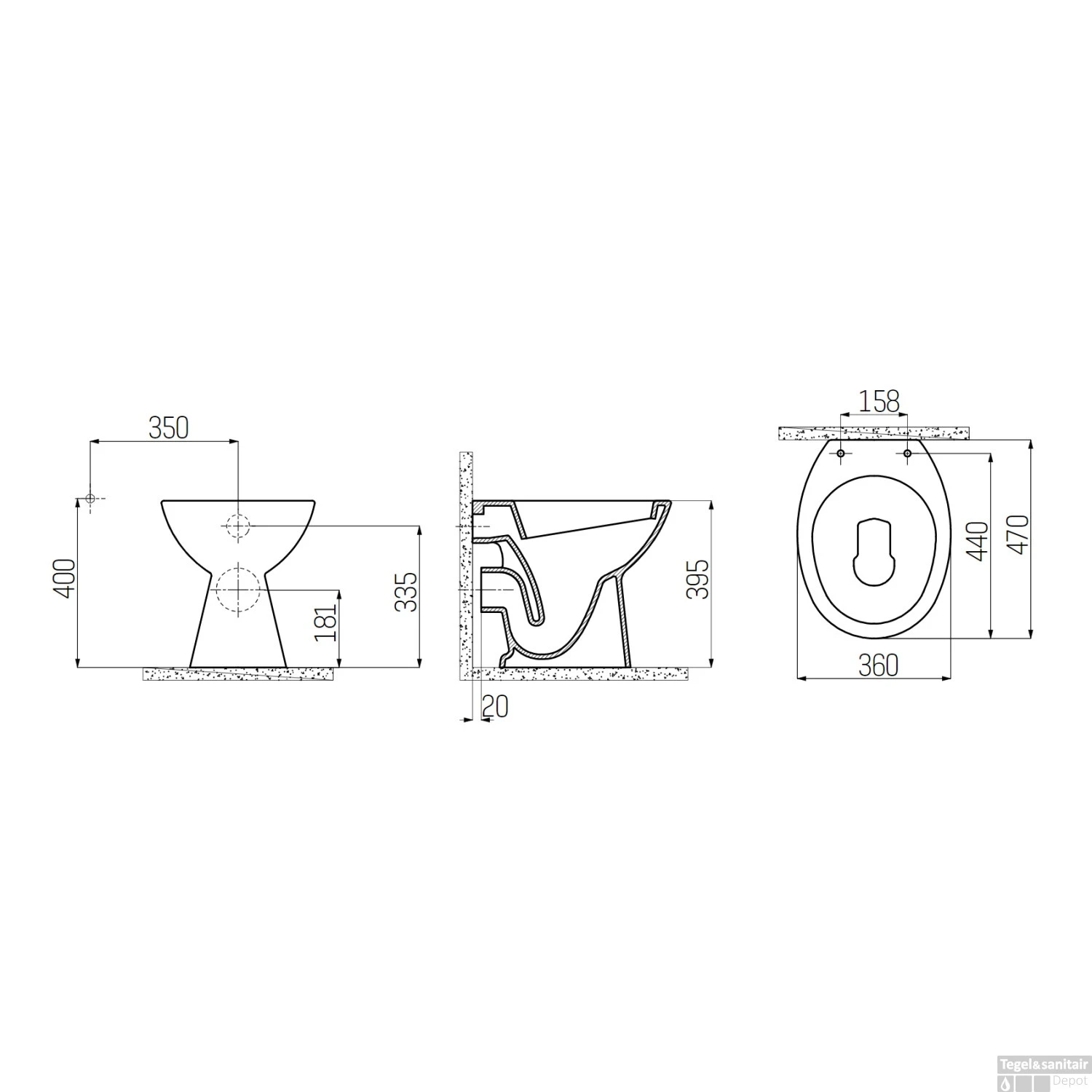 Specificaties Toiletpot Staand Boss & Wessing Holt Met Bidet Muur Aansluiting Wit: