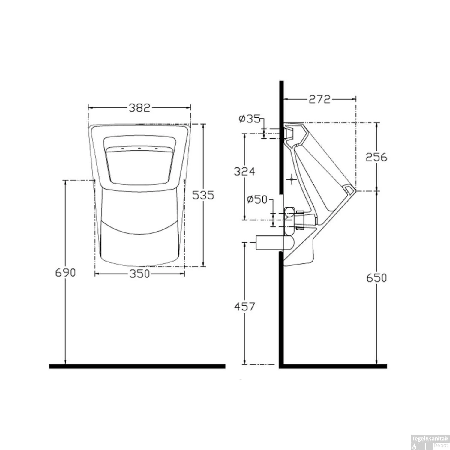 Specificaties Urinoir 38.2×53.5 cm Keramiek Wit Sapho Purity:
