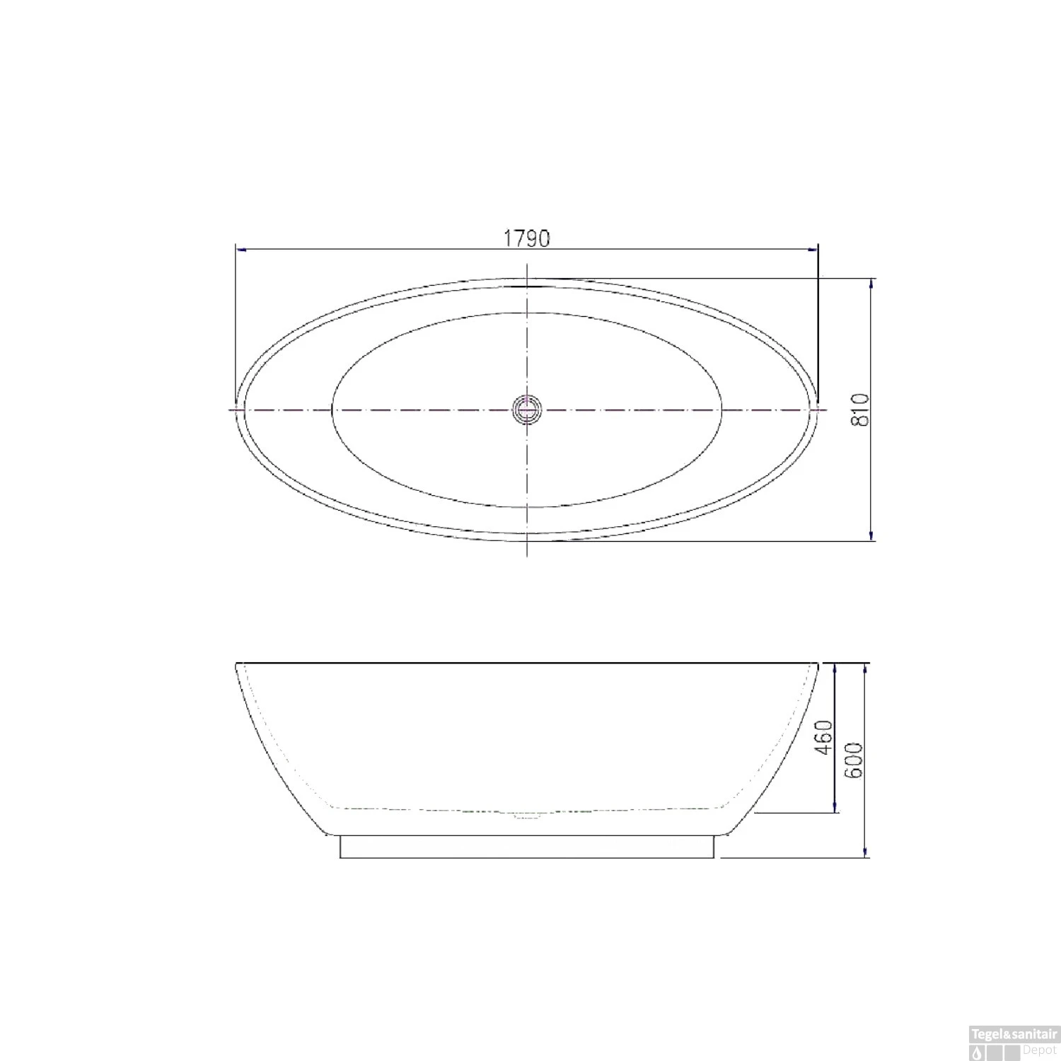 Specificaties van het Luca Sanitair vrijstaande bad: