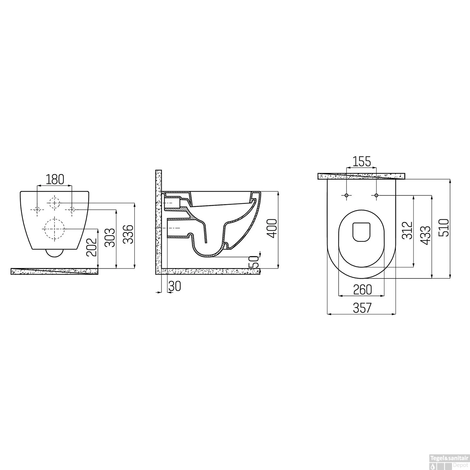 Specificaties Wandcloset Boss & Wessing Freedom Glans Wit (Exclusief zitting):