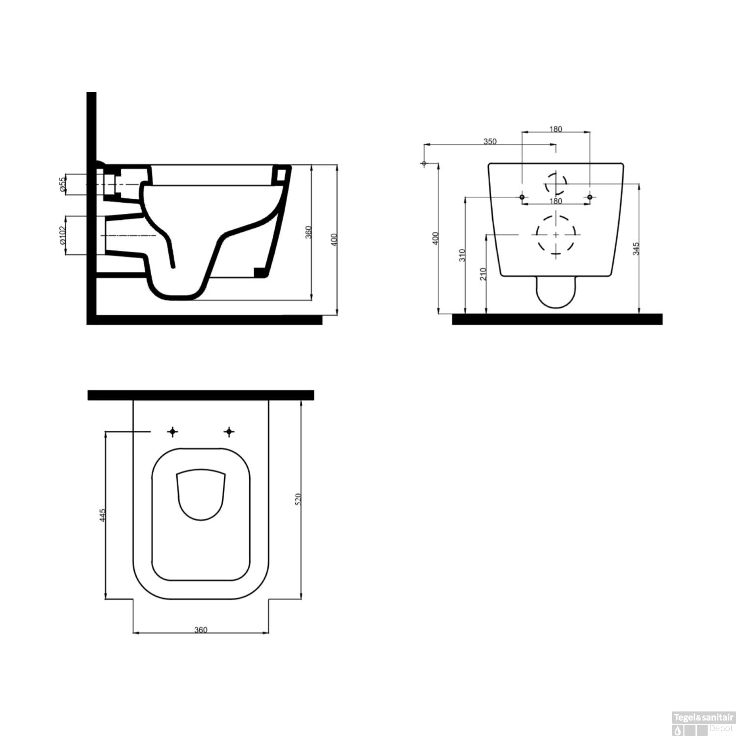 Specificaties van de Idevit Halley wandcloset zonder spoelrand