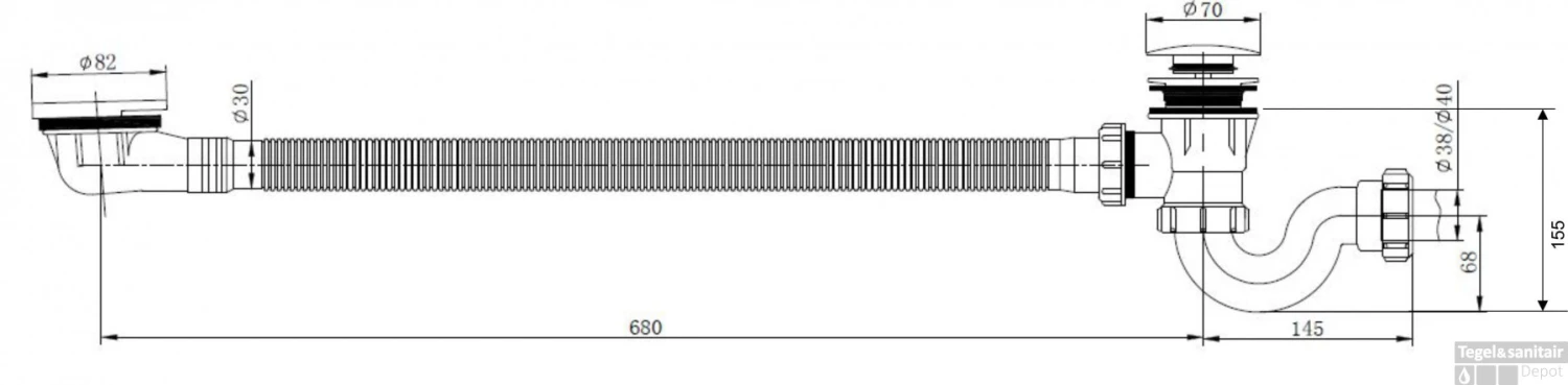 Badafvoerplug Afbouwdeel Set Boss Wessing Tbv Badoverloopcombinatie Met Vulfunctie Rond Gunmetal